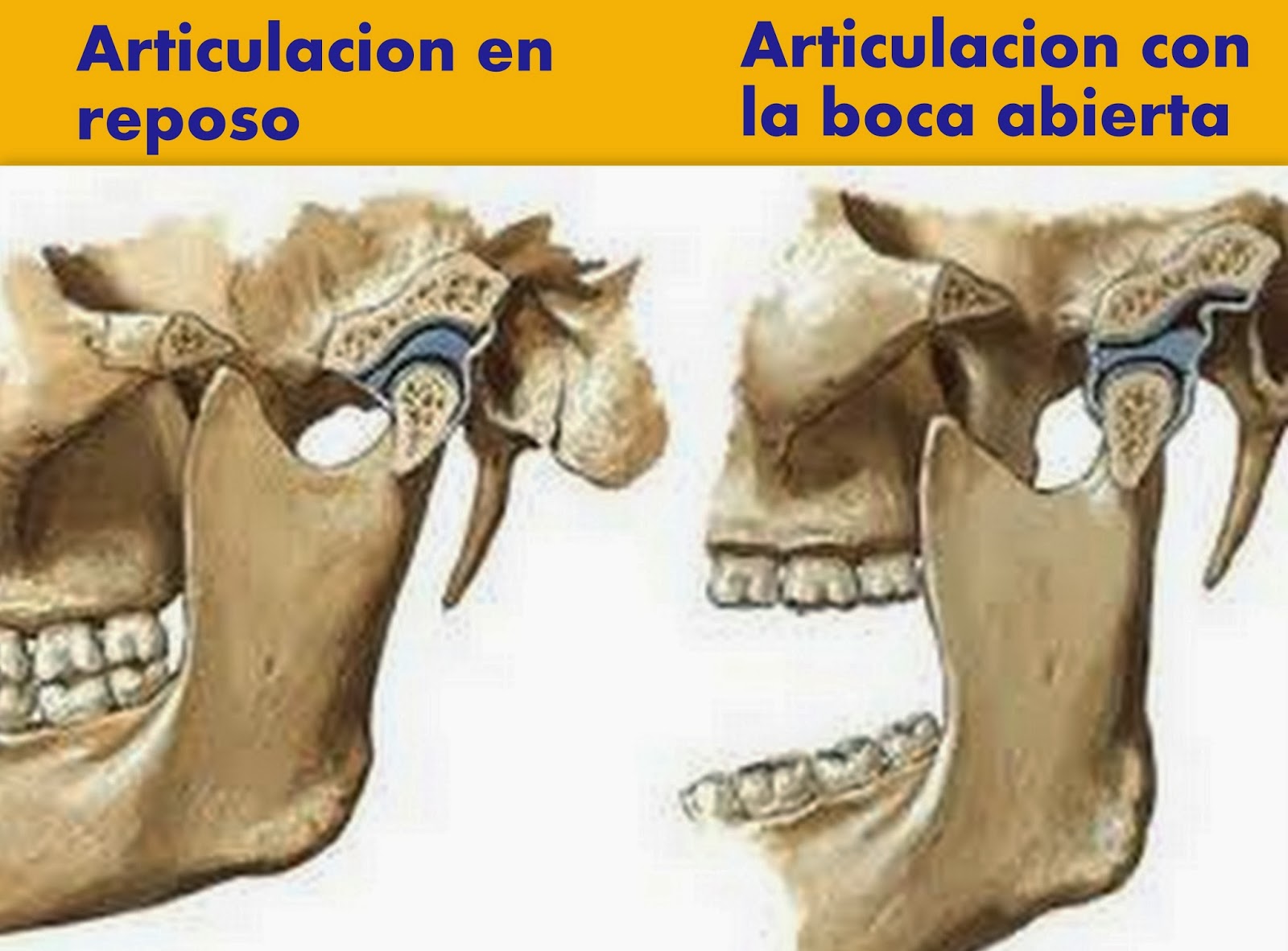 • La mandíbula y el hueso temporal. Son los cóndilos de la mandíbula los que articulan con la cavidad del hueso temporal.